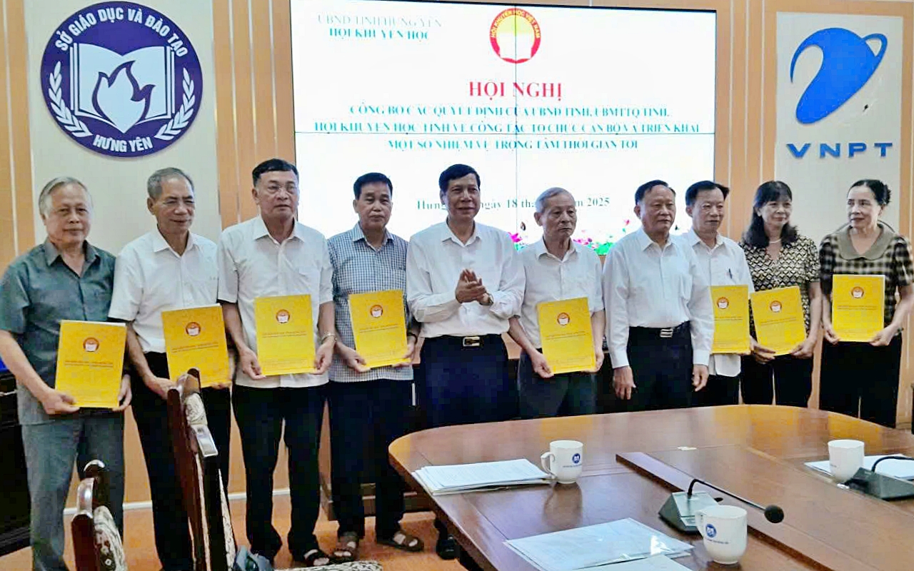 Hội nghị công bố các quyết định của UBND, UB Mặt trận Tổ quốc, Hội Khuyến học tỉnh Hưng Yên về công tác tổ chức, cán bộ và báo cáo một số kết quả từ khi sáp nhập đến nay, triển khai một số nhiệm vụ khuyến học trong thời gian tới.