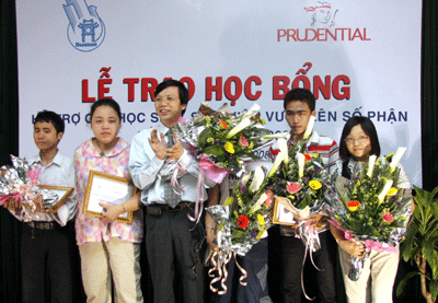 Mỗi năm, "đến hẹn lại lên", Công ty Bảo hiểm nhân thọ Prudential và báo Hànộimới lại tổ chức lễ trao học bổng nhằm hỗ trợ một phần kinh phí cho các em khuyết tật vượt khó học giỏi. Đây là lần trao học bổng thứ 13 cho 30 học sinh, sinh viên khuyết tật trên địa bàn Thủ đô. |