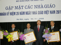 Nhân kỷ niệm 26 năm ngày Hiến chương các nhà giáo 20-11, tối 19/11, Bộ GD-ĐT đã tổ chức gặp mặt các nhà giáo, những người vừa vinh dự được Chủ tịch nước ký phong tặng nhà giáo nhân dân, nhà giáo ưu tú. |