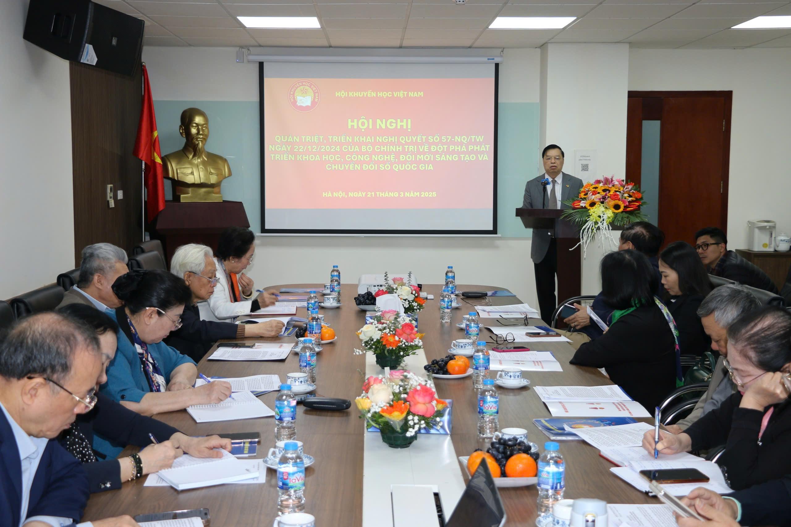 Hội nghị quán triệt, triển khai Nghị quyết số 57-NQ/TW của Bộ Chính trị về đột phá phát triển khoa học, công nghệ, đổi mới sáng tạo và chuyển đổi số quốc gia - do Hội Khuyến học Việt Nam tổ chức. Ảnh: Tuấn Anh