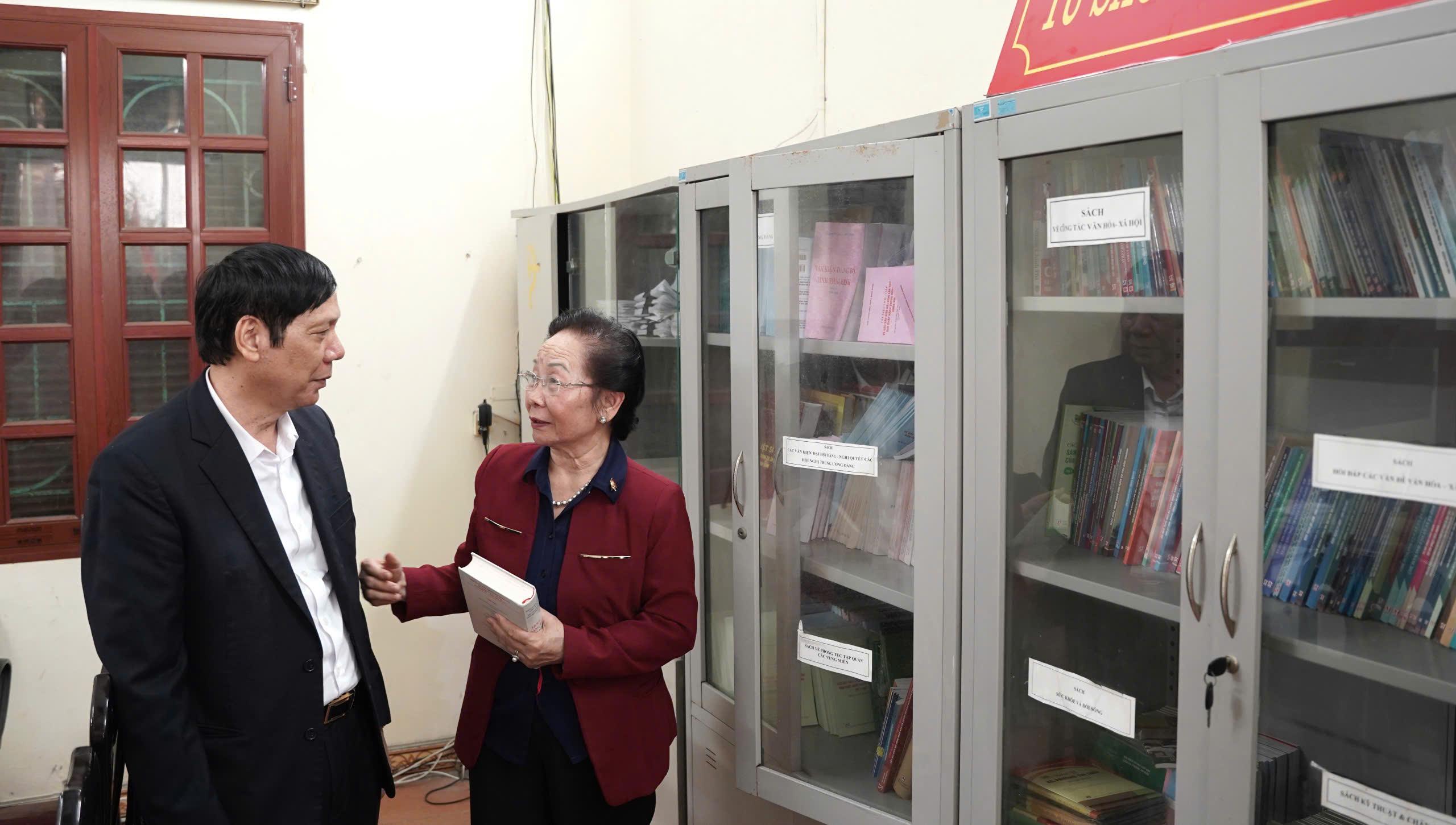 GS.TS Nguyễn Thị Doan, nguyên Ủy viên Ban Chấp hành Trung ương Đảng, nguyên Phó Chủ tịch nước, Chủ tịch Hội Khuyến học Việt Nam cùng đoàn công tác khảo sát việc đổi mới trung tâm học tập cộng đồng thời kỳ chuyển đổi số tại xã Đông Thọ (Thái Bình). Ảnh: Văn Thành
