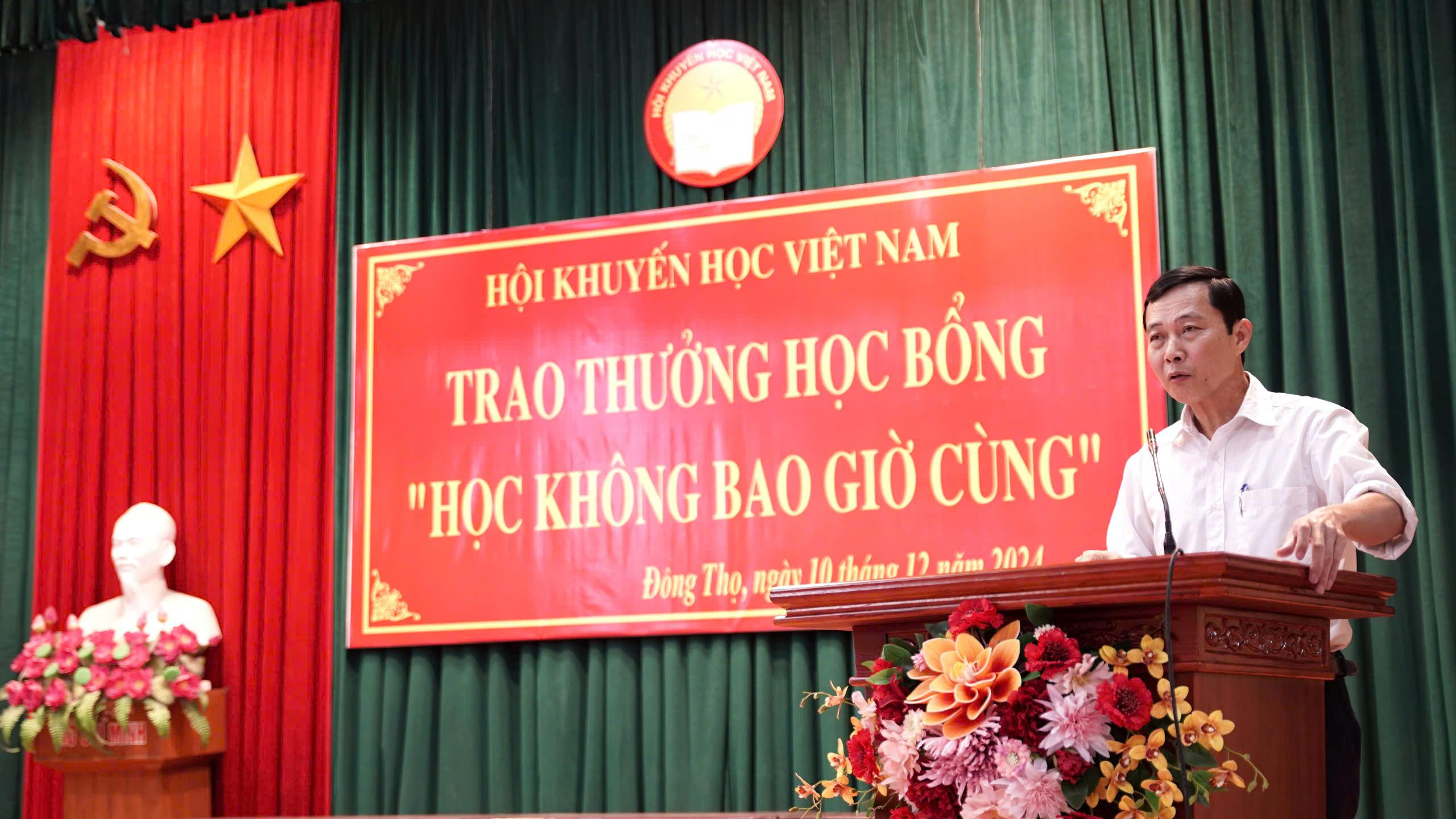 Nhân dịp này, Hội Khuyến học Việt Nam đã trao học bổng "Học không bao giờ cùng" cho 4 người lớn có thành tích tiêu biểu trong lao động, sản xuất; 16 học sinh có thành tích học tập xuất sắc, học sinh vượt khó tiêu biểu, trẻ mầm non thuộc diện gia đình khó khăn của xã Đông Thọ.