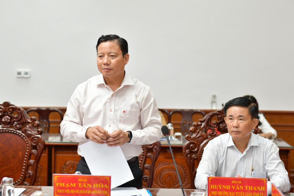 Tiếp và làm việc với Đoàn có Phó Trưởng ban Thường trực Ban Tuyên giáo Tỉnh ủy - Nguyễn Văn Đát; Phó Chủ tịch UBND tỉnh - Phạm Tấn Hoà; lãnh đạo một số sở, ngành tỉnh.