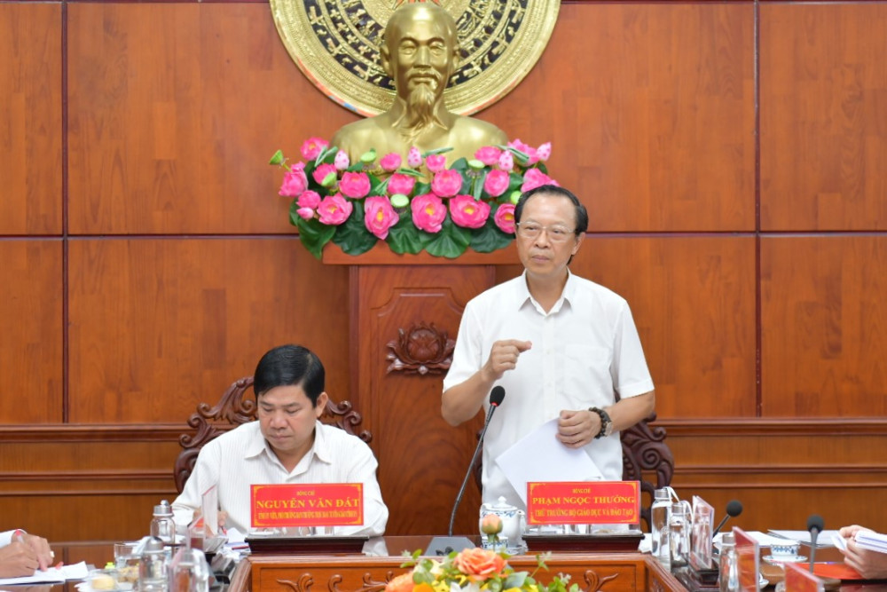 Phát biểu tại buổi khảo sát, Thứ trưởng Bộ Giáo dục và Đào tạo - Phạm Ngọc Thưởng đánh giá cao những kết quả của tỉnh Long An trong công tác khuyến học, khuyến tài, xây dựng xã hội học tập.