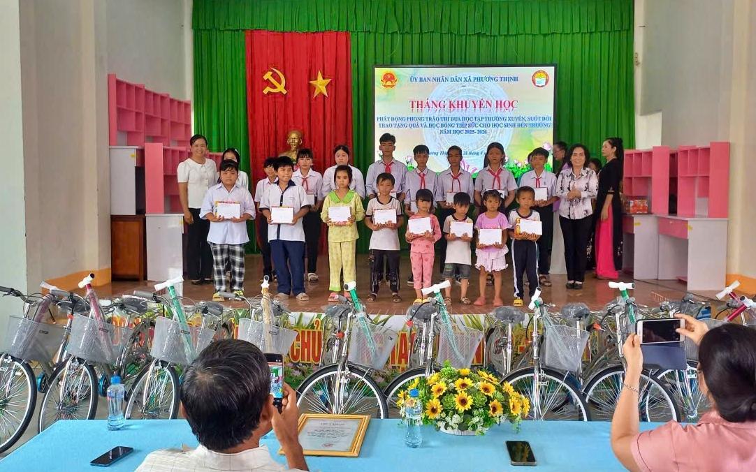 Dịp này, các xã đã trao 1.080 suất học bổng và tặng 350 phần quà, 70 xe đạp và 20 góc học tập, 3.800 cuốn vở học sinh... cho 1.460 học sinh có hoàn cảnh khó khăn đang học từ bậc mầm non đến trung học phổ thông.