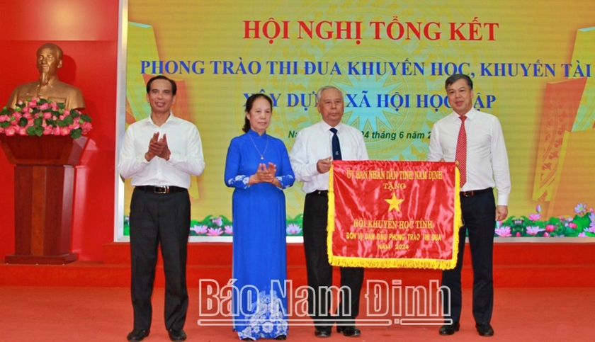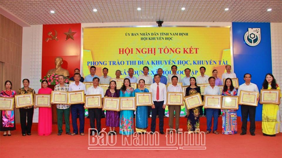 Tại hội nghị, đồng chí Chủ tịch Hội Khuyến học Việt Nam Nguyễn Thị Doan và đồng chí Phó Chủ tịch UBND tỉnh Trần Lê Đoài đã trao Bằng khen, Cờ thi đua của Hội Khuyến học Việt Nam và UBND tỉnh Nam Định cho Hội Khuyến học tỉnh cùng các tập thể, cá nhân có thành tích xuất sắc trong phong trào khuyến học, khuyến tài, xây dựng xã hội học tập, giai đoạn 2020-2025.