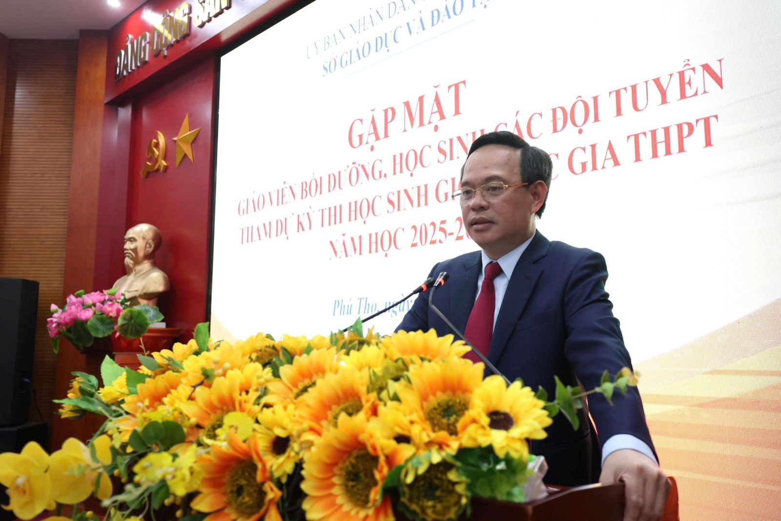 Tại buổi gặp mặt, Giám đốc Sở GD&ĐT Trịnh Thế Truyền đã ghi nhận, biểu dương sự nỗ lực, kiên trì, tinh thần trách nhiệm của các thầy, cô giáo tham gia nhiệm vụ bồi dưỡng và sự nỗ lực quyết tâm cao các em học sinh. Đồng chí đề nghị các em học sinh cần bình tĩnh, tự tin, phát huy tối đa khả năng sẵn có để đạt được kết quả tốt nhất trong kỳ thi sắp tới, góp phần viết tiếp trang sử vàng truyền thống hiếu học của quê hương Đất Tổ, nối tiếp thành tích vẻ vang của ba tỉnh Vĩnh Phúc, Phú Thọ, Hòa Bình trước đây, phấn đấu đưa nền giáo dục Phú Thọ sau hợp nhất đứng trong top 5 cả nước.