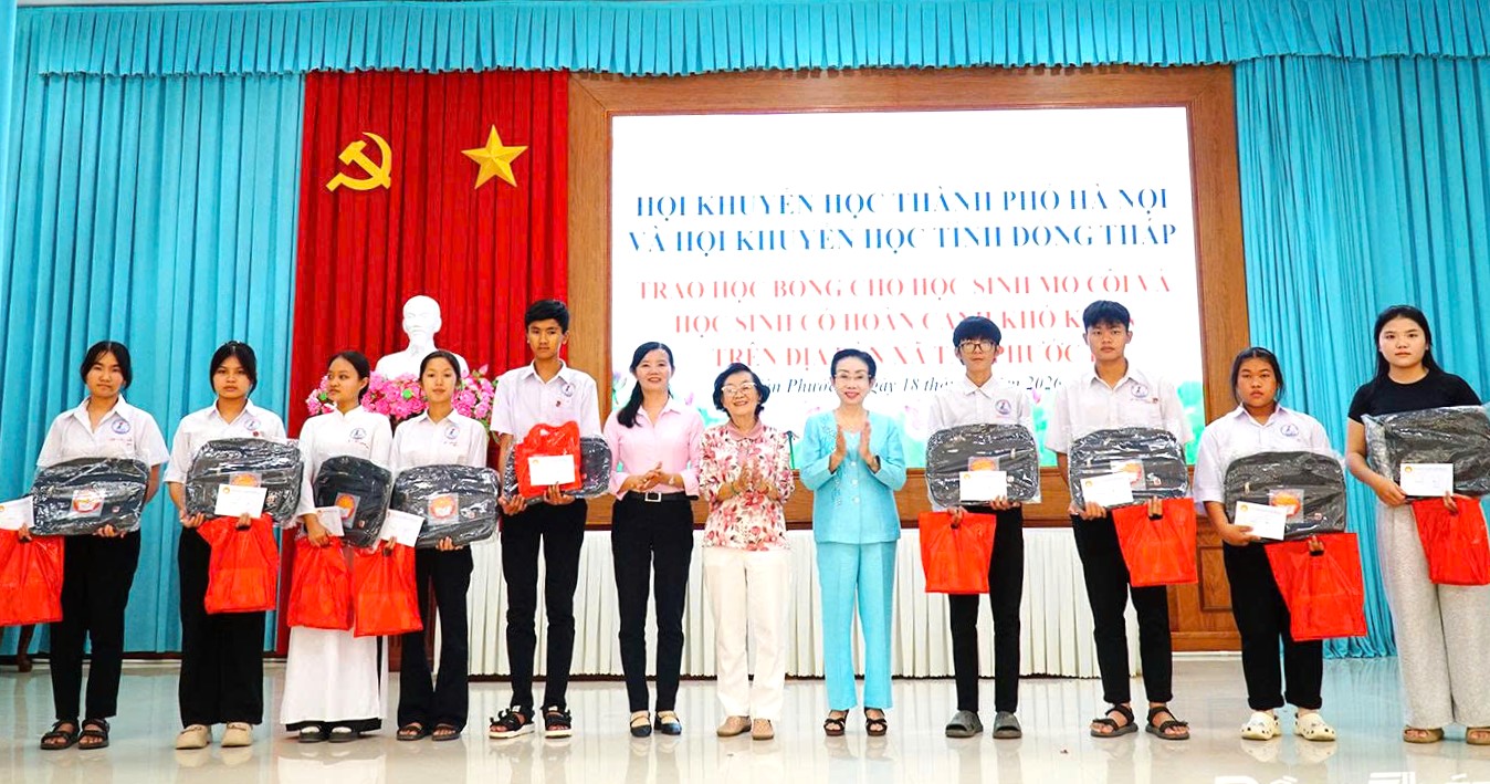 Hội Khuyến học Thành phố Hà Nội tặng 20 triệu đồng hỗ trợ các học sinh Đồng Tháp có hoàn cảnh khó khăn.