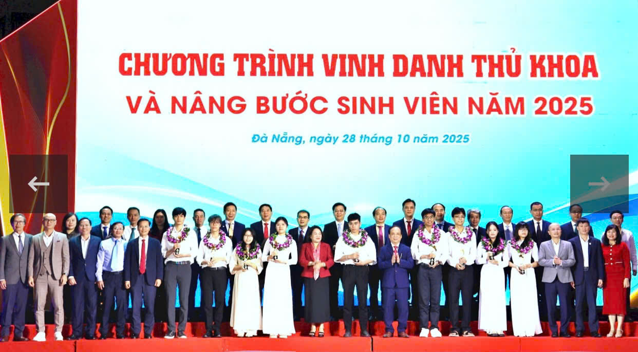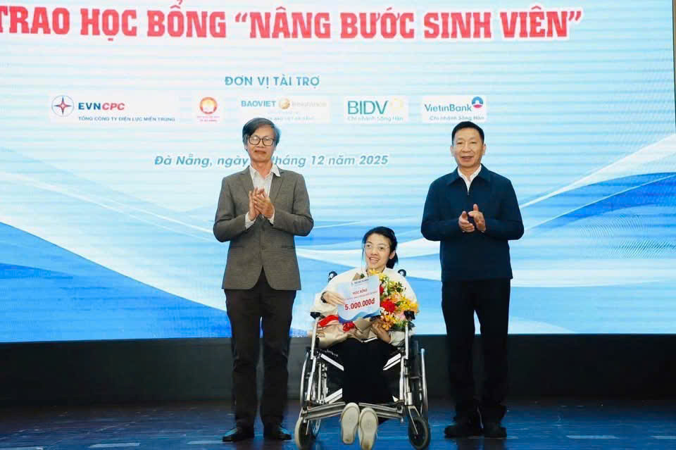 Hội Khuyến học thành phố Đà Nẵng trao học bổng cho sinh viên trong Chương trình Vinh danh thủ khoa và nâng bước sinh viên năm 2025 do Đại học Đà Nẵng tổ chức