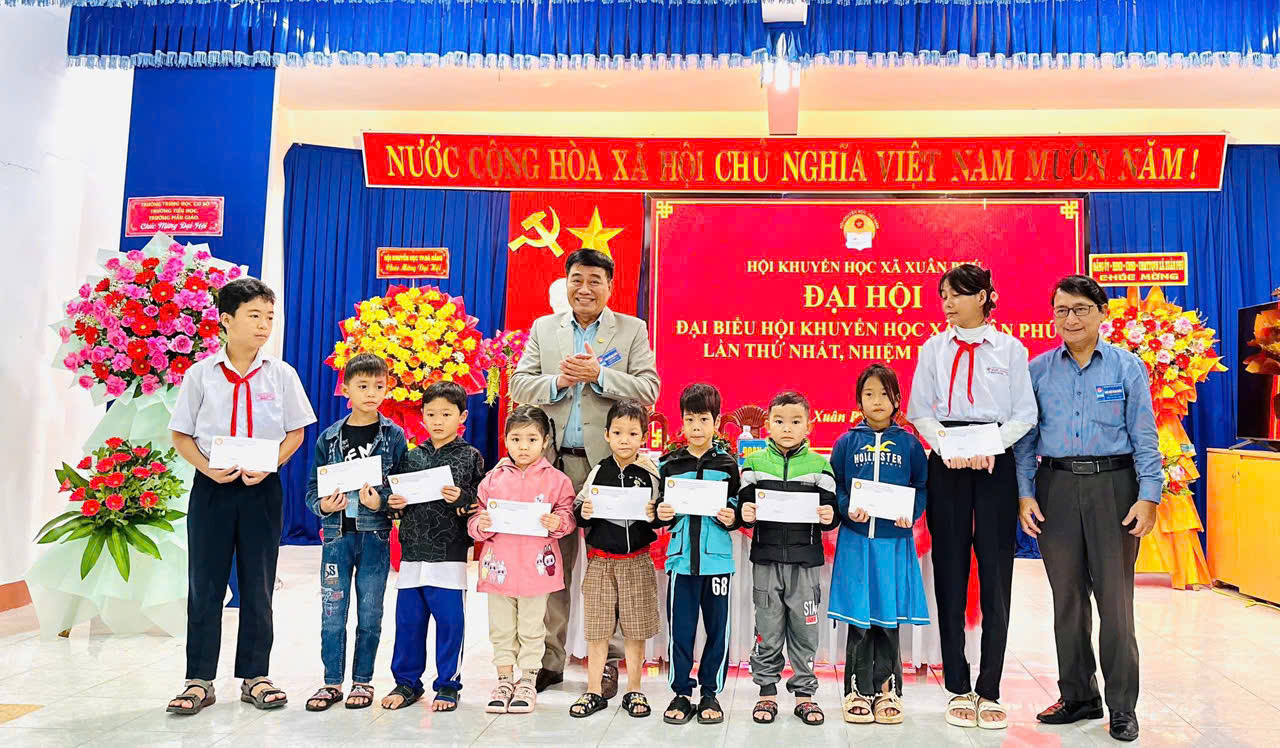 Lãnh đạo Hội Khuyến học thành phố Đà Nẵng trao học bổng cho học sinh vượt khó, học tốt trong Đại hội Hội Khuyến học xã Xuân Phú, Đà Nẵng; đơn vị tổ chức Đại hội HKH cấp xã đầu tiên của thành phố Đà Nẵng