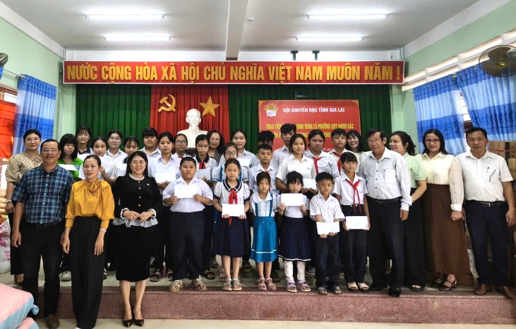 Hội Khuyến học Gia Lai cùng các đơn vị đồng hành trao 70 suất học bổng, 13.700 quyển vở cho các em học sinh tiểu học, trung học cơ sở và trung học phổ thông tại các xã, phường của tỉnh Gia Lai bị ảnh hưởng bởi bão lũ.