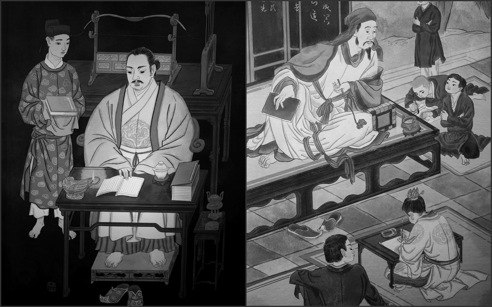 Các bức hoạ ngày nay minh hoạ về sự học thời Lý - Trần.