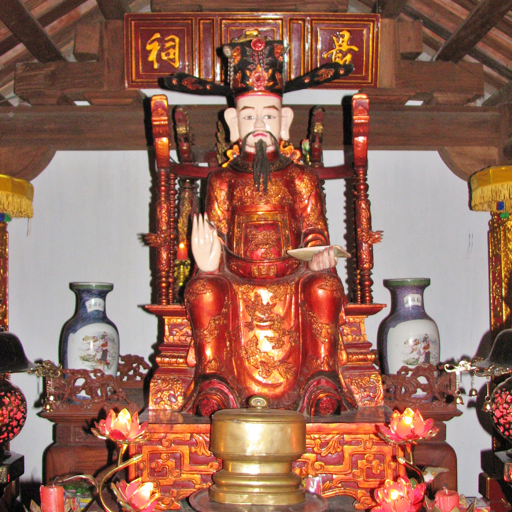 Tượng Trạng nguyên Lê Văn Thịnh tay cầm bút, nghiên trong Đền thờ Thái sư Lê Văn Thịnh tại Bắc Ninh.