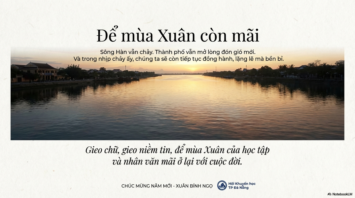 Xuân Bính Ngọ đã về trên đất trời Đà Nẵng. Sông Hàn vẫn chảy. Thành phố vẫn mở lòng đón gió mới. Và trong nhịp chảy ấy, tôi tin rằng, những người làm công tác khuyến học sẽ còn tiếp tục đồng hành cùng nhau, lặng lẽ mà bền bỉ, thầm lặng gieo chữ, gieo niềm tin, để mùa Xuân của học tập và nhân văn mãi ở lại với cuộc đời.