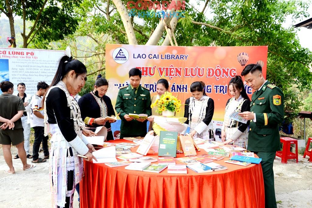 Thư viện tỉnh Lào Cai mang sách, báo đến ngày hội phục vụ người dân địa phương. Ảnh: Quốc Hồng